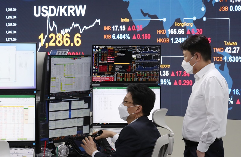 Am 19. März unterzeichneten Korea und die USA ein Währungsswap-Abkommen über 60 Milliarden US-Dollar. Das Foto zeigt Mitarbeiter der KB Kookmin Bank bei der Arbeit in einem Handelsraum des Seouler Finanzzentrums Yeouido.ⓒ Yonhap News