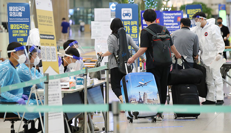 In Korea einreisende Personen aus Ländern, die einer verstärkten Quarantänekontrolle unterliegen, müssen in den 48 Stunden vor Einreise eine Bescheinigung vorlegen, aus der hervorgeht, dass sie negativ auf COVID-19 hin getestet wurden. Das Foto zeigt den Ankunftsbereich des Terminals 1 am internationalen Flughafen Incheon am 13. Juli. Ⓒ Yonhap News